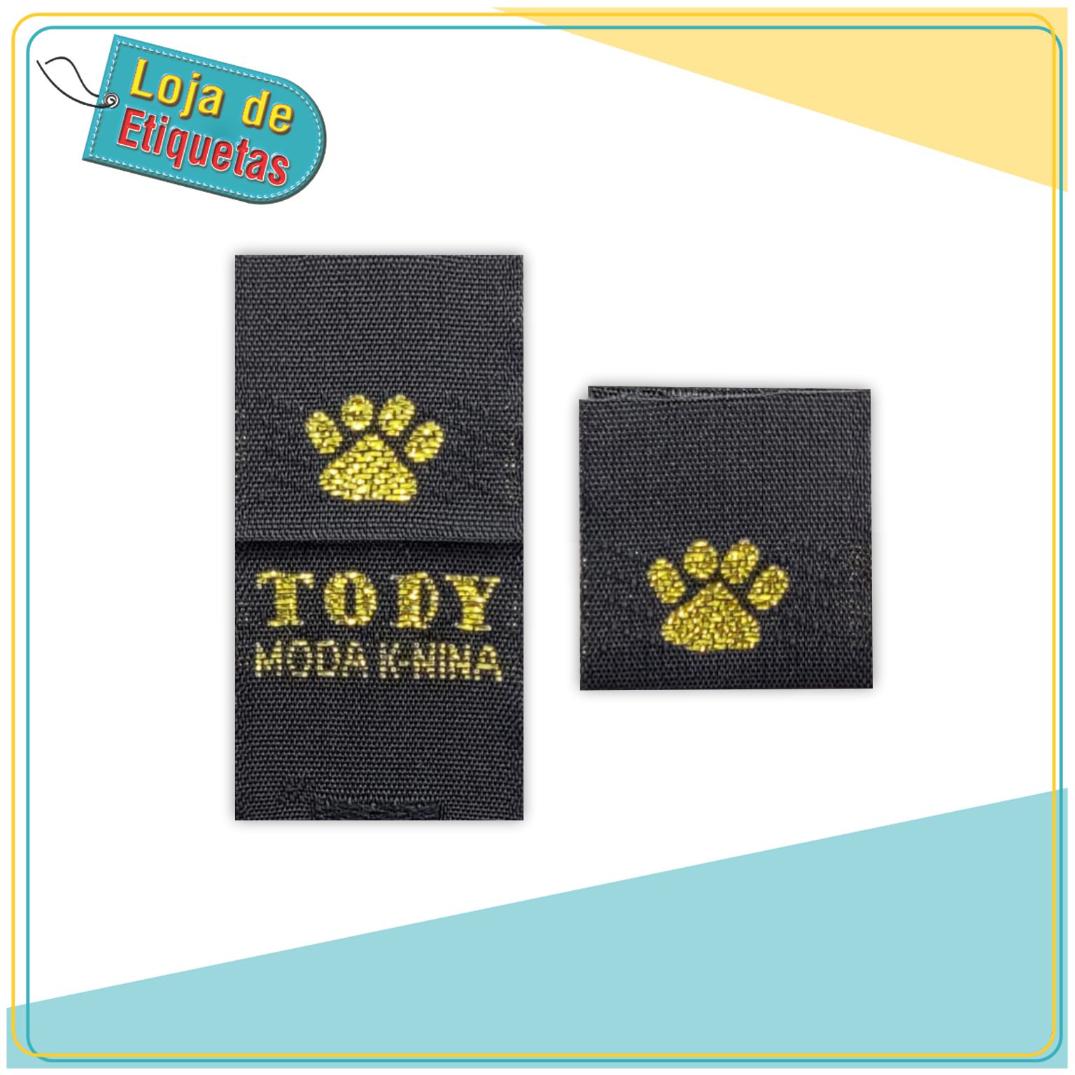 - Etiquetas tecidas em Tafetá com fios em lurex brilhante