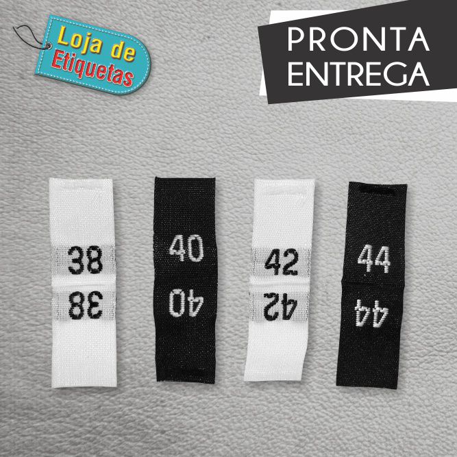 Apresentação: Pacote com 100 etiquetas em fundo branco com bordado preto ou fundo preto com bordado branco.