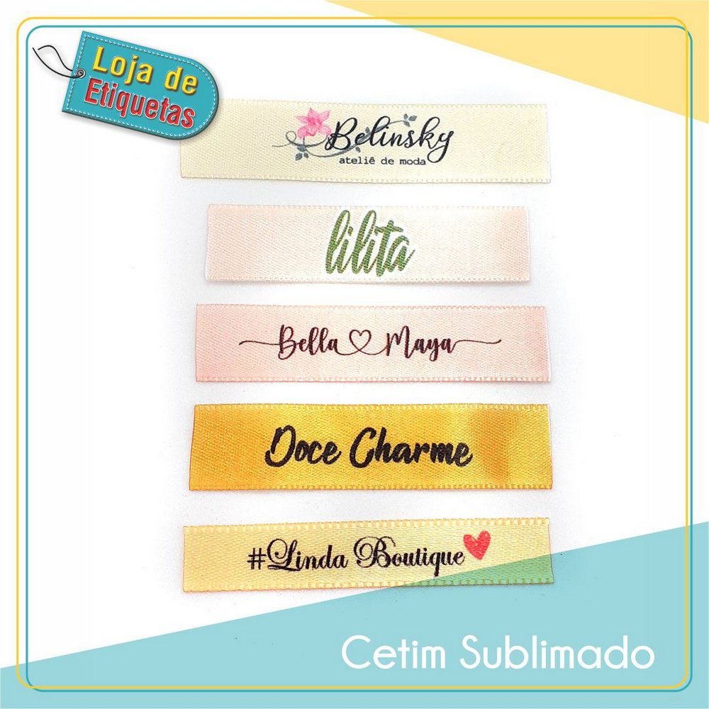 Etiquetas sublimadas na Fita de Cetim.